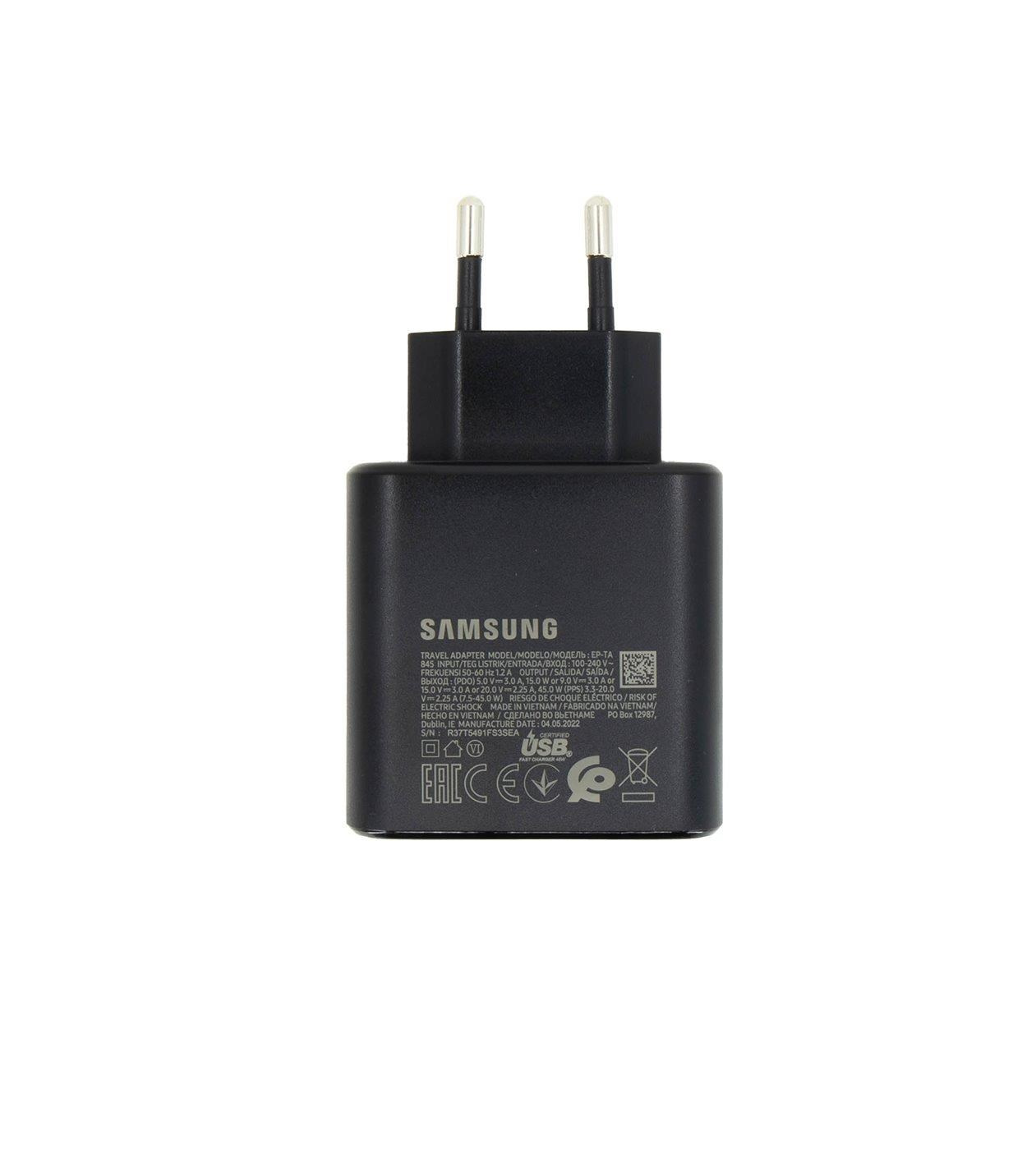 Vlastnosti - Maximální výkon 45W - Výstup USB-C - nabíjecí proud a napětí: PDO: 5V/3A ; 9V/3A ; 15V/3A ; 20V/2,25A PPS : 3.3-20V/2,25A - Vstup 100V-240V - Super Fast Charging - PowerDelivery (PD) - Ochrana proti přebití, zkratu, přehřátí a přepólování . Samsung Electronics Czech and Slovak, s.r.o., V Parku 2323/14, 148 00 Praha, Chodov, info@samsung.cz