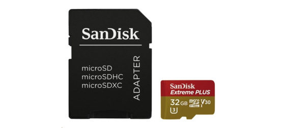 Popis SanDisk MicroSDHC karta 32GB Extreme PLUS (10MB/s, UHS-I V30, Rescue Pro Deluxe) + adaptér