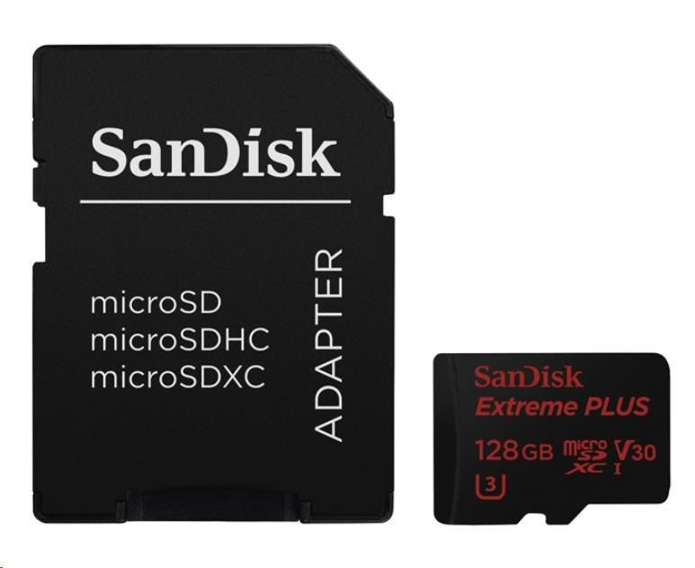 Popis SanDisk MicroSDXC karta 128GB Extreme PLUS (100MB/s, Class 10 UHS-I V30)