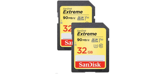 2x SanDisk SDHC Extreme 32GB 90MB/s Class 10 memory card