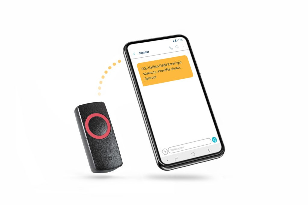 SOS tlačítko Klik – nošené na ruce nebo na krku – slouží zejména k přivolání pomoci. Při obdržení výstrahy z naší Senzoor centrály mohou navolené kontakty okamžitě reagovat na nastalou situaci.