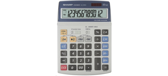 Stolní kalkulátor s 12-ti místným LCD displejem..