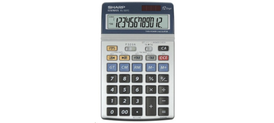 Stolní kalkulátor s 12-ti místným LCD displejem.