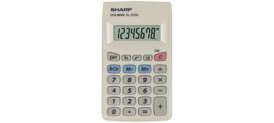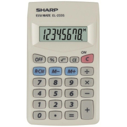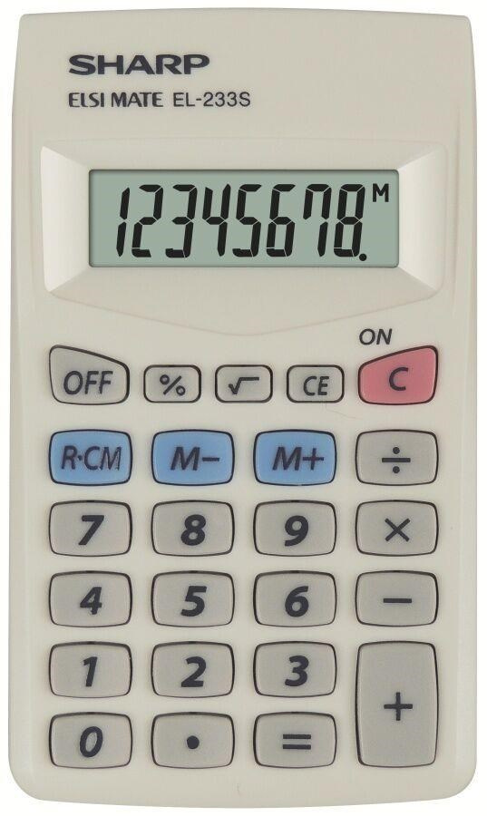 Pocket calculator with compact design, large LCD display(8 digits), square root and percentage calculations.. Sharp Business Systems Czech Republic s.r.o., K Červenému dvoru 3269/25a 130 00 Praha 3, Kontakt: https://www.sharp.cz/o-spolecnosti-sharp/kontaktujte-nas