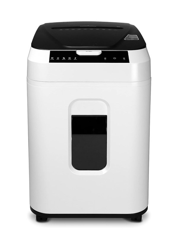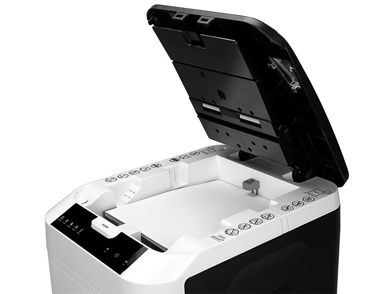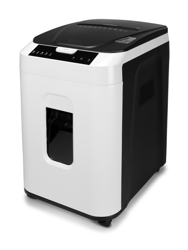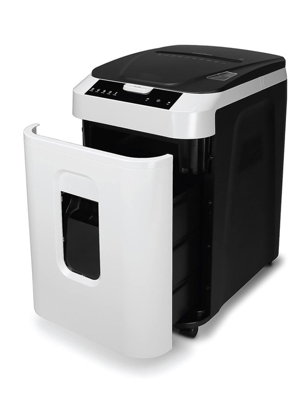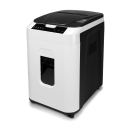 Automatický skartovací stroj atraktivního designu s kapacitou zásobníku na 180 listů pro střední kanceláře. Vhodný pro skartaci dokumentů o šířce 220 mm. Stroj je standardně vybaven automatickým systémem start/stop, zpětným chodem, tepelnou pojistkou motoru proti přehřátí, signalizací přeplněného koše. Příležitostně lze skartovat sešívací sponky a kreditní karty. Šíře vstupu: 220 mm Velikost řezu: 2 x 12 mm Kapacita při manuálním vložení, papír DIN A4, 70 g/m2: 10 Kapacita automatického zásobníku: 180 listů Stupeň utajení dle nové DIN 66399: P-5 Řezný mechanismus skartuje CD, kreditní karty a sponky: ne Rychlost: 0,05 m/s Velikost koše: 32,2 litrů Hlučnost motoru: < 55 dB Připojovací parametry, Watt / Volt/Hz ( střídavý proud ): 500 W /230 / 50 / 1~ Délka nepřetržité skartace: 60 min Tepelná pojistka motoru proti přehřátí: dvojitá Automatický start/stop: ano Aut. zpětný chod / aut. vypnutí při ucpaném koši: ano Elektronické zabezpečení dveří: elektronické s LED kontrolkou Pojezdová kolečka: ano Rozměry, mm ( v x š x h ): 555 x 365 x 265 Hmotnost: 16,1 kg. , ,