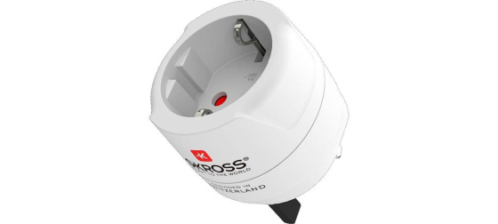cestovní adaptér s uzemněním, max. 7A pro obyvatele Evropy, navštěvující Anglii a země s UK standardem. Schuko uzemnění zásuvky - funkční pro univerzální vidlice lze použít i spotřebiče s 2-kolíkovou šňůrou nová bezpečnější konstrukce ochranný límec pro zajištění bezpečného zasunutí/vysunutí vidlice dětské pojistky švýcarská kvalita a design barva: bílá. , ,