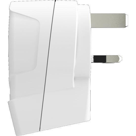 cestovní adaptér s uzemněním, max. 7A integrovaný USB nabíjecí adaptér, 2400mA výhodné spojení dvou zařízení v jednom pro obyvatele Evropy, navštěvující Anglii a země s UK standardem Schuko uzemnění zásuvky, pro všechny spotřebiče s 2- a 3-kolíkovou šňůrou dětské pojistky švýcarská kvalita a design barva: bílá. , ,