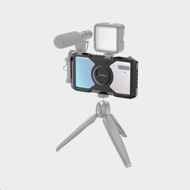 SmallRig Samsung NOTE10+CAGE Professional Edition CPS2454 is designed to protect your samsung note10+, and provide access to attach other accessories for mobile photo & video shooting, live streaming, interviewing, vlogging, etc.It comes with two cold shoes and multiple 1/4”-20 threaded holes, allowing mount of different accessories like a microphone, LED light, tripod, etc., and supports both horizontal vertical shooting. It’s compatible with SmallRig Aluminum Side Handle for Smartphone Cage HSS2424 for handheld shooting, and SmallRig Mobile Phone Cable Clamp BSC2390 to secure the cable during shooting. The inbuilt rubber shims help absorb shocks and prevent the phone from scratching. The hollowed out design that reduces weight and heats off the mobile phone avoids the interface and antenna area, thus avoiding the risk of signal interference. It also comes with a lanyard hole for a wrist strap.Quick opening and closing structure can be quickly opened and closed cage.