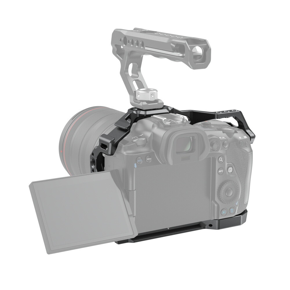 Plně tvarovaná klec pro fotoaparáty Canon R5, R6 a R5 C zachovává přístup k ovládacím prvkům fotoaparátu a nabízí řadu možností montáže.