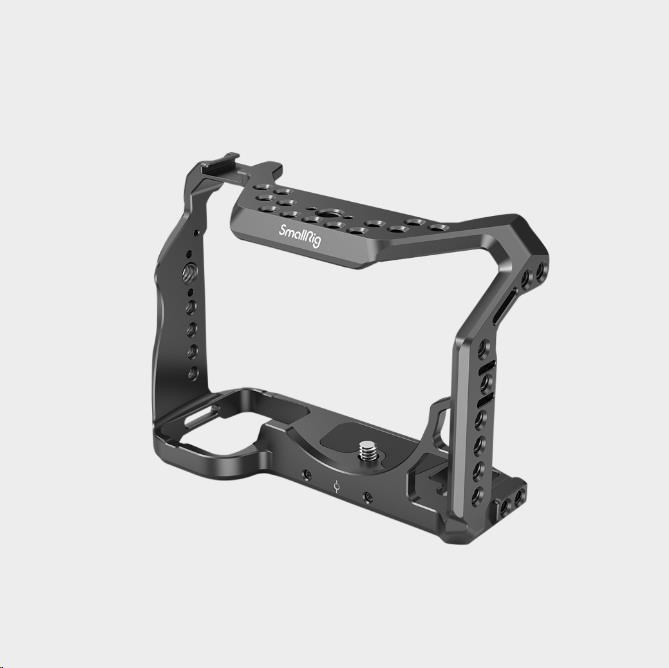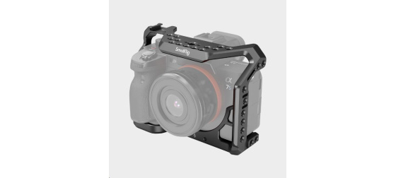 Plně tvarovaná klec pro Sony A7S III s přístupem k ovládacím prvkům fotoaparátu a nabídkou různých možností montáže.