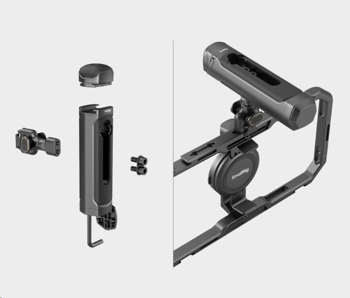 Lze ji plynule přepínat mezi režimem boční a horní rukojeti prostřednictvím různých způsobů montáže.