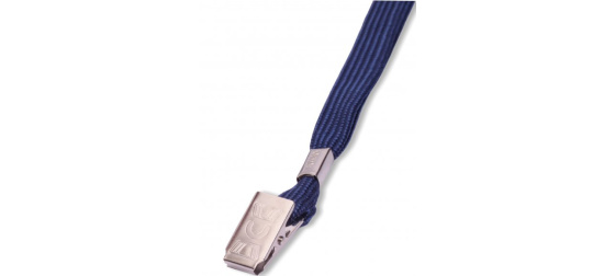 Šňůrka na krk s klipsem pro uchycení visačky. Lze použít na visačku s vyděrovaným podélným otvorem nebo se závěsem. Šířka 10 mm, délka 90 cm..