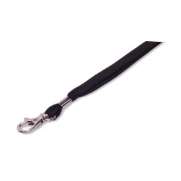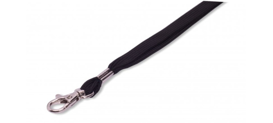 Dutá šňůrka s karabinkou černé barvy. Šířka sňůrky 12 mm, délka 90 cm. Balení 50 ks..
