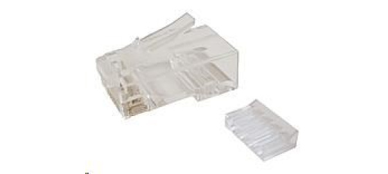 Nestíněný konektor RJ45 8p8c. Na licnu, kulatý kabel. S vložkou. Konektory Solarix typu RJ45 jsou spolehlivé komponenty, které jsou konstrukčně uzpůsobeny tak, aby bylo zajištěno bezchybné spojení mezi kontakty konektoru a měděnými vodiči datového kabelu. Konektory jsou dostupné pro rozdílné typy kabelů, a to pro drát a licnu. Kontakty konektorů RJ45 CAT5E a CAT6 jsou kryty 50 µ zlata. Tyto konektory jsou dostupné ve stíněné i nestíněné verzi. V případě konektorů RJ12 a RJ11 je krytí zlatem 15 µ a tyto konektory jsou určeny především pro oblast telekomunikací. Konektory jsou baleny po 100 ks.