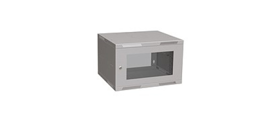 Nástěnný skládaný rozvaděč SENSA 6U se skleněnými dveřmi, hloubka 450 mm.