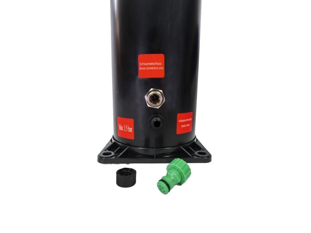 Montáž sprchy je velmi jednoduchá a zvládnete ji sami. Solární sprcha se připevní k podkladu pomocí 4 šroubů, které jsou součástí balení. Pak už stačí připevnit zahradní hadici a je to hotové. Pokud nechcete sprchu připevňovat k zemi, můžete ke sprše dokoupit podlahový podstavec a připevnit k sprchu k němu. Pokud je podstavec dostatečně velký (např. Podstavec k solární sprše CF), zajistí samonosnost sprchy a není ho potřeba více kotvit. Podstavec je praktickým doplňkem k solární sprše – je protiskluzový, bezpečný a s odtokem vody. Sprchu připevněnou k podstavci lze snadno přenést na jiné místo v zahradě.