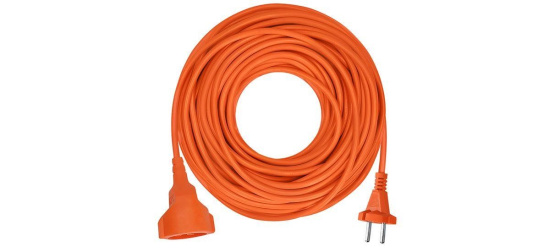 Oranžový prodlužovací kabel s délkou 20 metrů a jednou zásuvkou je ideální k prodloužení elektrické energie na zahradě nebo v dílně. Vhodný pro připojení zařízení s dvoupólovou neuzemněnou vidlicí přívodní sňůry, kterými je většina elektrických nástrojů. Barevné odlišení od okolního prostředí zvyšuje bezpečnost při práci.