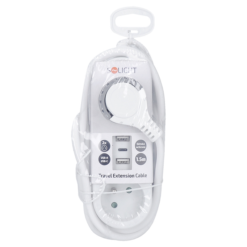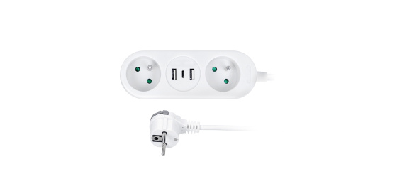 Prodlužovací napájecí kabel se dvěma zásuvkami a USB nabíječkou. Skladný, výkonný, lehce přenosný. Ideální pro nabíjení elektronických zařízení na cestách.