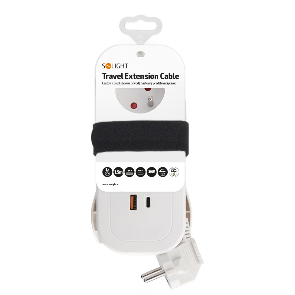 - Prodlužovací napájecí kabel se dvěma zásuvkami a USB rychlonabíječkou PD. Kabelový management zajišťuje přesné navinutí kabelu a minimální rozměr výrobku pro uložení do zavazadla. Skladný, výkonný, lehce přenosný. Ideální pro nabíjení elektronických zařízení na cestách.