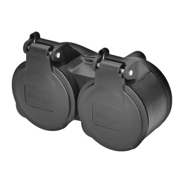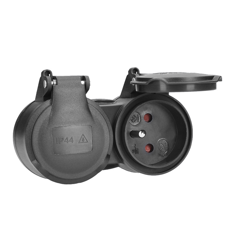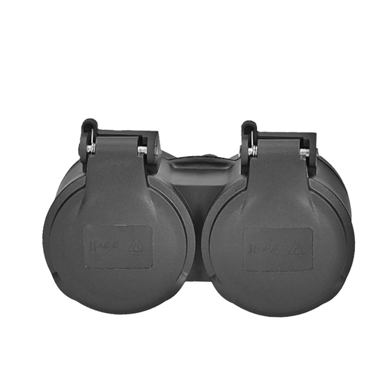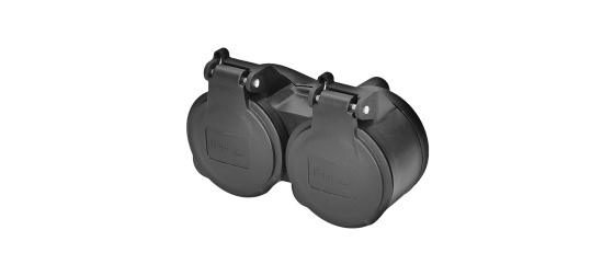 Rozbočka na kabel, 2 zásuvky 230V/16A, max. 3680W, krytky zásuvek, dětské pojistky, přímá, do vlhka - IP44, barva: černá.
