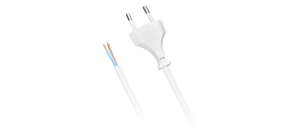 Průřez vodičů: 2 x 0,75mm2, typ kabelu: H03VV-F2, plochá vidlice, barva: bílá, délka: 2m.