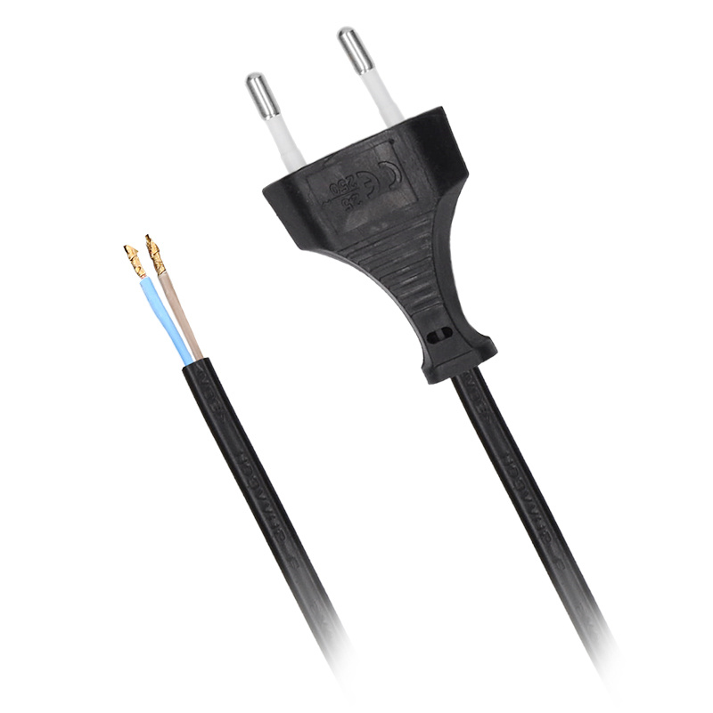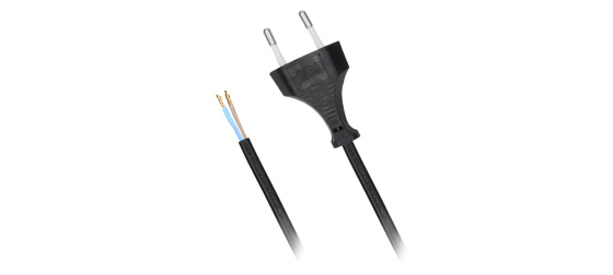 Průřez vodičů: 2 x 0,75mm2, typ kabelu: H03VV-F2, plochá vidlice, barva: černá.