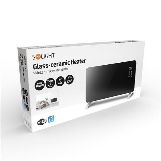 Sklokeramický elegantní design připojení k WiFi síti, možnost ovládání mobilním telefonem z kteréhokoliv místa na světě, při dostupném internetovém připojení aplikace Smart Life v Českém jazyce maximální výkon 2000W (možnost přepínání 1000/2000W) snadno čitelný a velký LED displej rozsah nastavitelných teplot 5-40°C krytí IP24, možnost užití v koupelnách, atp. možnost volného stání nebo montáže na zeď týdenní časovač, nastavitelný termostat ochrana proti přehřátí rozměry: 920x240x430mm napájení: 230V/50Hz. Solight Holding s.r.o., Na Pankráci 1685/17, 140 00 Praha 4, Česká republika, info@solight.cz