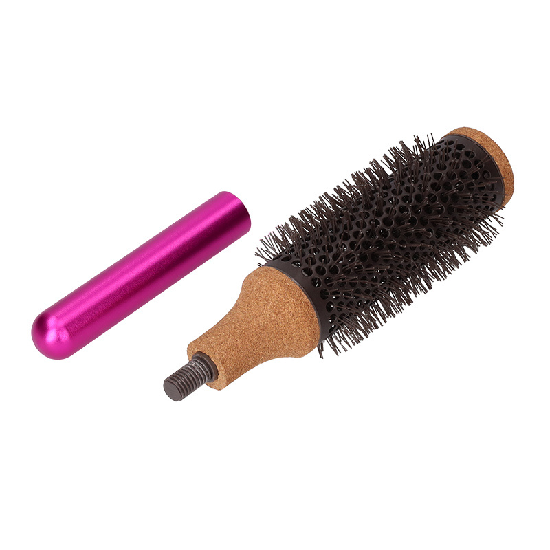 Kovové tělo s nylonovými štětinami pomáhá redukovat krepatění, dodává lesk a uzavírá vlasové kutikuly, takže vlasy mají hladkou a jemnou strukturu od kořínků ke konečkům. Přitom je dodává šetrným a rovnoměrným způsobem, aby pomohl vlasy upravit a vysušit, aniž by je poškodil. Tento kulatý kartáč vám pomůže narovnat vlasy, dodat jim objem a vytvořit vlny a lokny podle vašich představ. Vhodný pro rovné vlasy, kudrnaté vlasy, fénování běžných nebo hustých vlasů. Rukojeť kombinuje kovové i dřevěné materiály, elegantní a krásná textura. Ergonomicky navržená protiskluzová rukojeť, snadné a pohodlné držení, díky kterému můžete snadno objevovat nové účesy. Vhodný pro středně dlouhé a dlouhé vlasy a lze s ním dosáhnout potřebného stylingu různých účesů. Používejte je s fénem, pomohou rychle ochladit vlasy a zafixovat lokny. S kartáčem, který při úpravě vlasů dodá plnost, máte v ruce sílu profesionálního výkonu. Nezbytný nástroj pro úpravu vlasů.