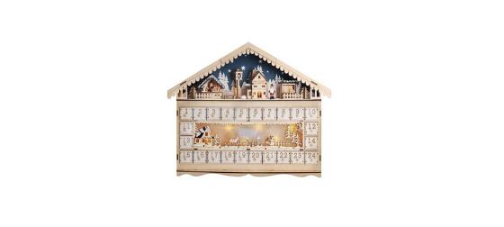 Solight LED adventní kalnedář - horská chata, 10x LED, 50x40cm, 2x AA