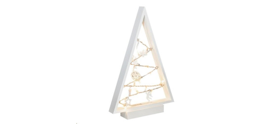 Solight LED dřevěný vánoční stromek s ozdobami, 15LED, přírodní dřevo, 37cm, 2x AA