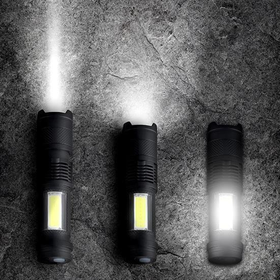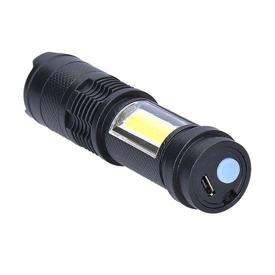 nabíjecí LED kapesní svítilna s USB konektorem svítivost: 100lm + 70lm (přední + boční) 3 režimy sví
