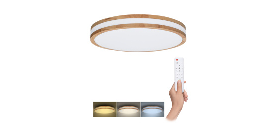 LED osvětlení Woody v sobě kombinuje kvalitní masivní dub a špičkovou technologii. Díky přiloženému dálkovému ovladači lze pohodlně regulovat teplotu světla v rozsahu 3000K–6500K a upravit intenzitu osvětlení dle aktuální nálady. Výkon 48 W a světelný tok 3360 lm (při 4000K) zaručují dostatek světla pro každodenní použití v domácnosti i kanceláři.
