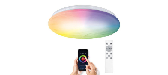 LED SMART WIFI osvětlení je ovládané chytrým telefonem pomocí aplikace. Podporuje Wifi 2,4GHZ, Android 4.1 a vyšší a IOS 8.0 a vyšší. Umožňuje nastavovat různé odstíny bílé (3000-6500K), barevné světlo (RGB) a intenzitu světla (stmívání). Světlo lze ovládat i dálkovým ovlačem (součástí balení) či zapínat a vypínat klasickým vypínačem. spotřeba: max. 30W světelný tok: max. 2300lm (pro 4000K) teplota chromatičnosti: 3000K-6500K (teplá - studená bílá), RGB volitelná barva světla v rámci stupnice RGB podpora a kompatibilita: Wifi 2,4GHZ, Androi 4.1 a vyšší, IOS 8.0 a vyšší, TuyaSmart app, SmartLife app, Connect Amazon echo, Google Home životnost LED: 25.000 hodin počet spínacích cyklů: 20.000 úhel svícení: 120° index podání barev Ra: >80 materiál: Fe + PS napětí: 220 - 240V, 50 - 60Hz provozní teplota: -20°C až 40°C tvar: kulatý rozměry: 380 x 65mm energetická třída: G.