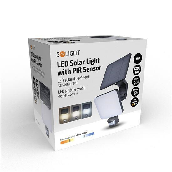 Popis Solight LED solární osvětlení se senzorem, 11W, 1200lm, 3 CCT, Li-Ion, černá