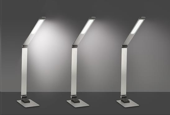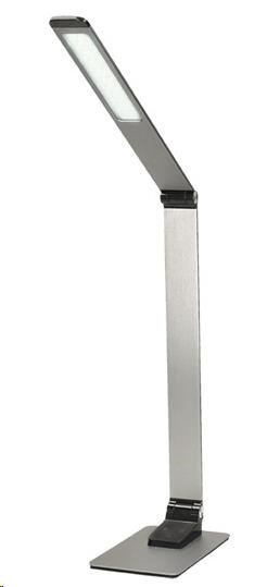 stolní lampička z broušeného hliníku s LED světelným zdrojem volitelná teplota světla (chromatičnosti): 3000K, 4500K, 6000K (teplá, neutrální a studená bílá) stmívatelná: 3-stupňové stmívání příkon: max. 11W světelný tok: max. 550lm USB zdířka pro nabíjení telefonů (5V, 1000mA) USB kábel súčasťou spínání a změna jasu dotykem prstu napájení: vstup: AC 100-240V výstup: DC 12V energetická třída: A+ LED zdroj nelze měnit materiál: hliník síla stěny: 6mm rozměr: 393 x 120 x 450mm délka napájecího kabelu: 140cm barva: stříbná. Solight Holding s.r.o., Na Pankráci 1685/17, 140 00 Praha 4, Česká republika, info@solight.cz