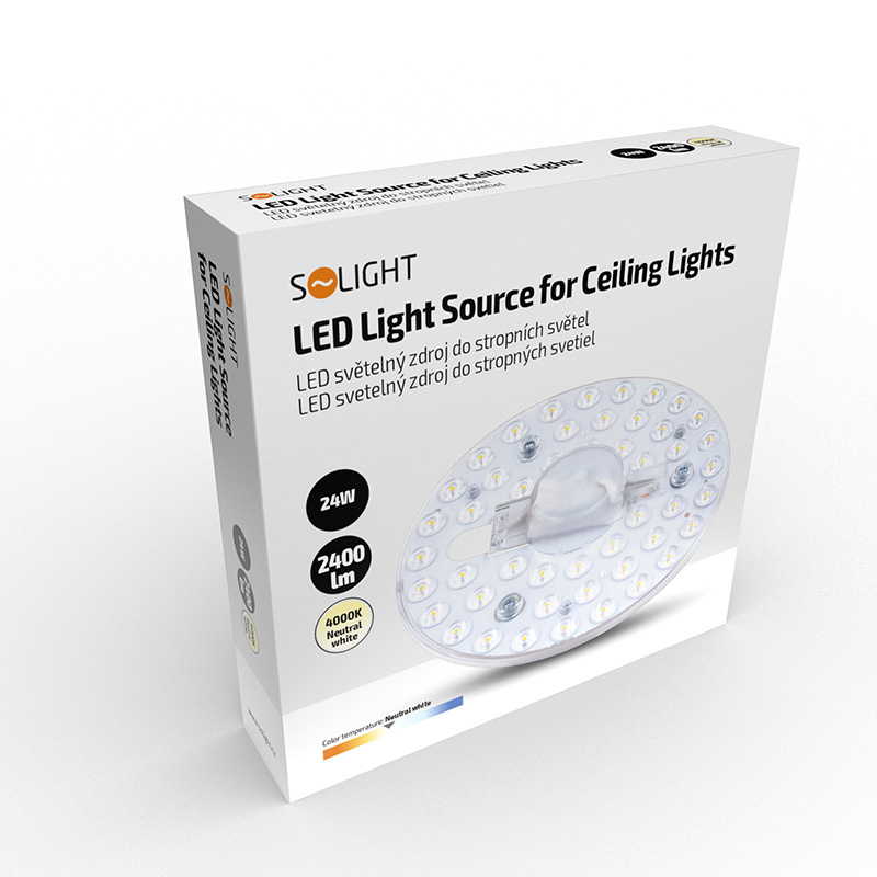 - LED světelný zdroj určený do stropních svítidel s kovovou základnou. Světelný zdroj se k základně připevňuje pomocí v budovaných magnetů.