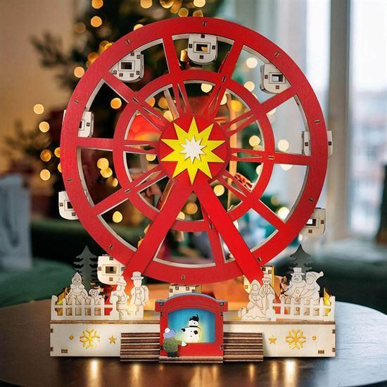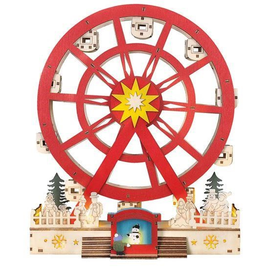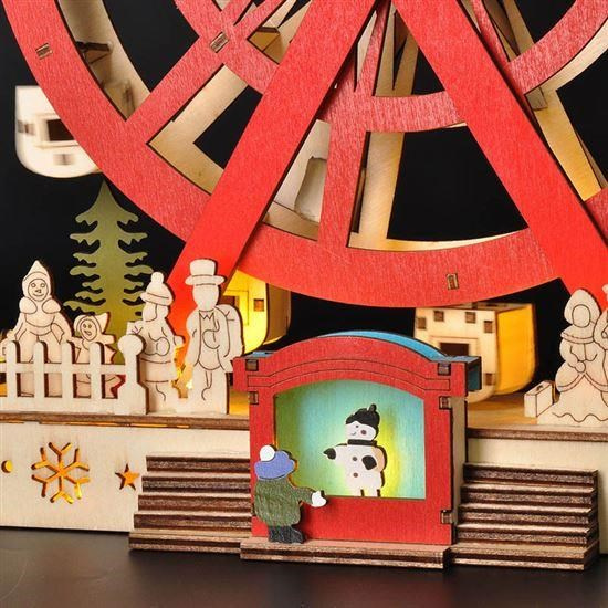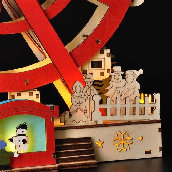 LED dřevěný vánoční kolotoč s elektro motorem, při zapnutí kolotoč svítí a otáčí se, počet LED diod: 7, barva světla: teplá bílá, režimy: zapnuto / vypnuto / časovač, časovač: 6hod zapnuto / 18hodin vypnuto, napájení: 2x AA baterie (nejsou součástí), výdrž baterií: cca 100hodin (v závislosti na kvalitě baterií), stupeň krytí: IP20 (vnitřní použití).Více