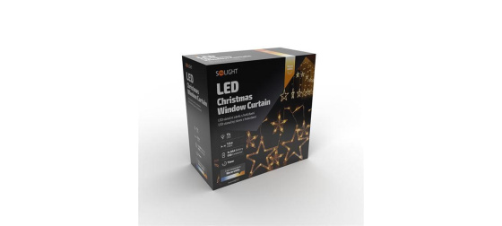 Solight LED vánoční závěs, hvězdy, šíře 1,8m, 77LED, IP20, 3xAA, USB