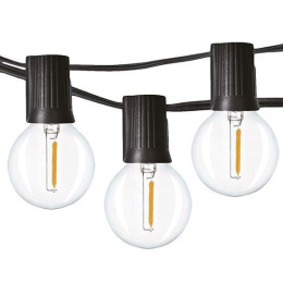 LED venkovní řetěz s LED žárovkami, počet LED žárovek: 25, typ LED žárovky: G40, E12, 0,8W, 30lm, barva světla: 3000K (teplá bílá), celkový příkon: 20W, celkový světelný tok: 750lm (25x 30lm), index podání barev: CRi>80, vnitřní i venkovní použití, vzdálenost žárovek: 60cm, délka osvětleného kabelu: 15m, délka přívodního kabelu: 5m.Více