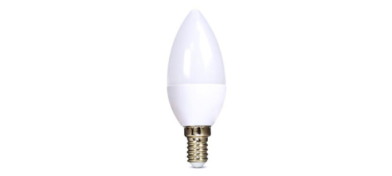 LED žárovka svíčková, spotřeba: 8W, světelný tok: 720lm (odpovídá tradiční 55W žárovce), teplota chromatičnosti: 4000K (neutrální bílá), životnost LED: 20.000 hodin, počet spínacích cyklů: 100.000x.