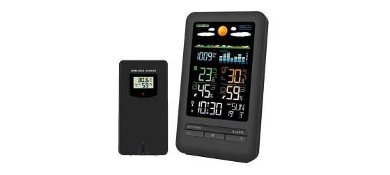 Solight meteostanice, barevný LCD, vnitřní/venkovní teplota a vlhkost, tlak, RCC, černá