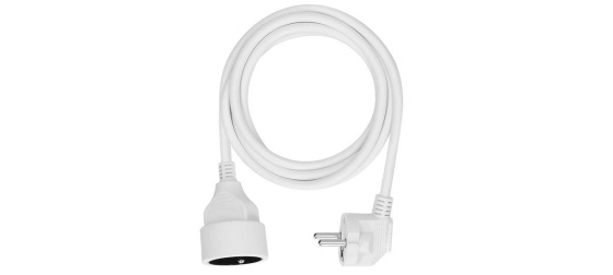 Kompaktní bílý prodlužovací kabel s délkou 2 metry a jednou zásuvkou je ideální pro jednoduché prodloužení elektrické energie v domácnosti, kanceláři nebo dílně. Vhodný pro připojení samostatného zařízení mimo dosah pevné zásuvky.