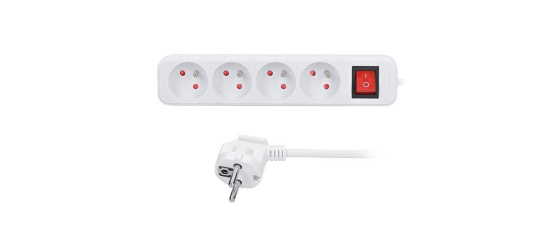 počet zásuvek: 4 průřez vodičů: 3 x 1mm2 typ kabelu: H05VV-F3 lomená vidlice barva: bílá délka: 2m 230V/10A vypínač.