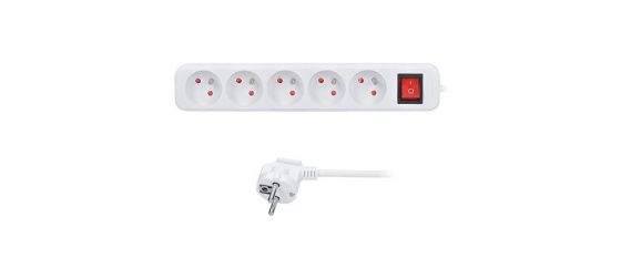 Praktický bílý prodlužovací kabel s délkou 5 metrů a pěti zásuvkami umožní přivést elektrickou energii tam, kde není k dispozici pevná zásuvka. Podsvětlený vypínač umožňuje pohodlné ovládání všech připojených zařízení. Ideální pro domácí i kancelářské využití.