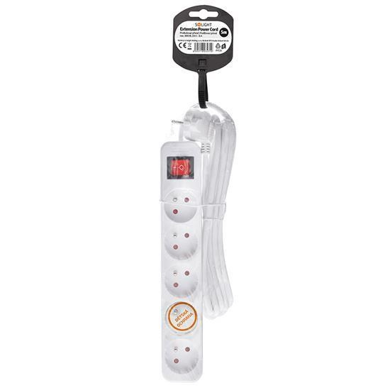 Popis Solight prodlužovací přívod 5m, 5 zásuvek, vypínač, 16A/3680W, PVC, bílý