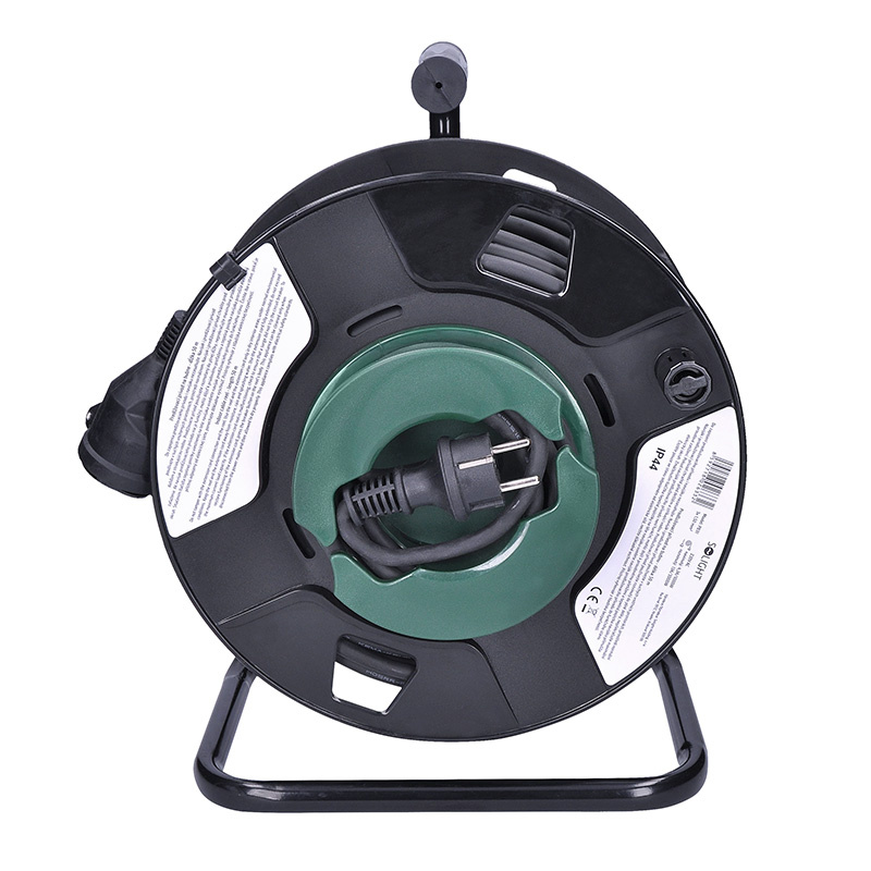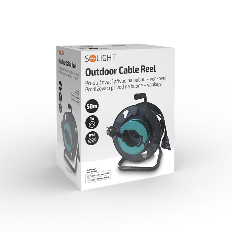 Gumový kabel s vodiči o průřezu 3×1,5 mm2 je vhodný pro venkovní použití i vnitřní prostory. Buben je vybaven zásuvkou s dětskými pojistkami a tepelnou pojistkou, která zajišťuje bezpečnost při přetížení nebo neúplném odvinutí kabelu. Produkt splňuje stupeň krytí IP44, který zajišťuje ochranu proti stříkající vodě.