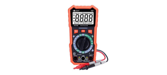 Digitální multimetr V32 Multimetr V32 je kompaktní a přesný přístroj pro měření elektrických veličin. Specifikace: Měření: Napětí (DC/AC): až 600 V (DC přesnost ±0,5 % až ±0,8 %, AC přesnost ±1 %). Proud (DC/AC): až 10 A. Odpor: až 200 M?. Testy: diody, tranzistory (hFE), baterie (1,5 V, 3 V, 9 V). Detekce napětí bez kontaktu (NCV): 30–1000 V. Funkce: Podsvícený displej pro lepší čtení hodnot i za špatných světelných podmínek. Integrovaná LED svítilna pro práci ve tmě. Automatické vypnutí po 15 minutách. Bezpečnost: Certifikace CAT III 600 V, jištění: F200mA/250V a F10A/250V. Napájení: 2x baterie AAA (1,5 V). Rozměry: 150 x 75 x 47 mm. Hmotnost: 300 g. Ideální pro profesionály i domácí použití.