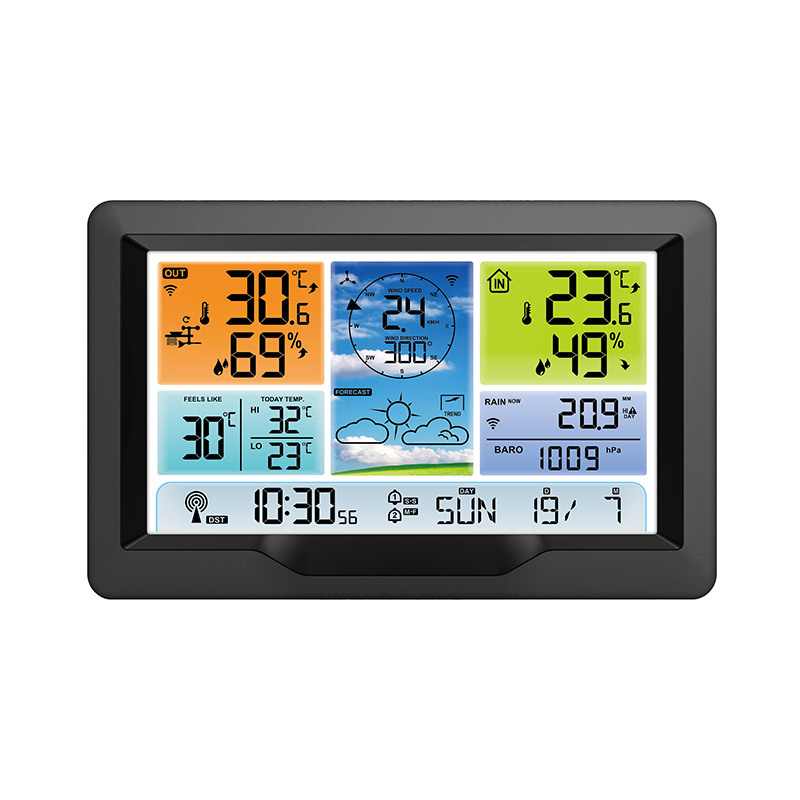 - upozornění na slabou baterii v meteostanici, konzoli a u přídavných senzorů
