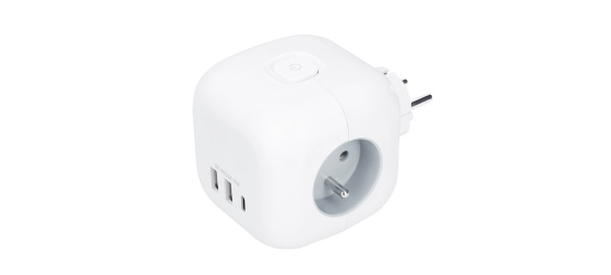 Kompaktní design a snadné použití Rozbočka ve tvaru kostky s délkou strany 8 cm spojuje tři uzemněné zásuvky s dětskou pojistkou a USB nabíječku s porty USB-C a USB-A. Díky kompaktnímu provedení je ideální pro použití v jakémkoli interiéru. Podsvětlený vypínač umožňuje snadné ovládání všech zásuvek i USB portů.