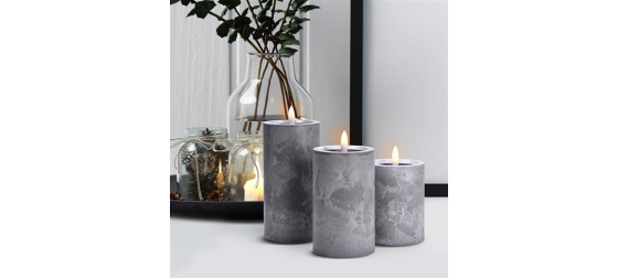 Vytvořte si elegantní atmosféru s LED svíčkami s efektem přirozeně blikajícího plamene a luxusním dekorem šedého mramoru. Tato sada tří svíček vnese do vašeho interiéru moderní a útulný vzhled bez nebezpečí otevřeného ohně.